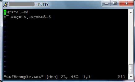 # vi utf8sample.txtvoici le texte chinois: Nous voyons qu'il y a encore quelque chose qui bloque, les idéogrammes en Unicode envoyés par SSH Linux sont affichés par Windows on ASCII Latin-1.